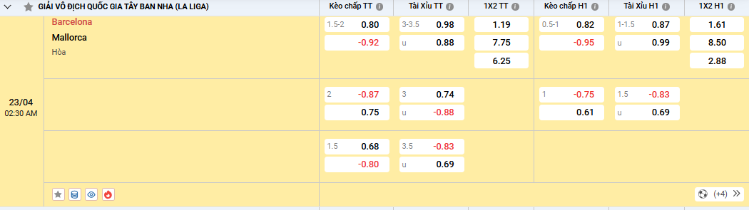 Soi kèo Barcelona vs Mallorca 02h30, 23/04/2025 La Liga Barcelona sẽ tiếp đón Mallorca tại vòng 33 La Liga, trận đấu họ sẽ chiến đấu hết mình cho ngôi vị vô địch mùa này. Dưới đây là phân tích chi tiết của tỷ lệ kèo nhà cái về phong độ thi đấu, tương quan lực lượng và lối chơi của hai đội: và soi kèo Barcelona vs Mallorca trước khi có quyết định xuống cược.Thông tin về soi kèo Barcelona vs MallorcaChủ nhà Barcelona luôn chiếm thế áp đảo đối thủ mỗi khi gặp nhau, họ thắng 9 và chỉ hòa 1 trận ở 10 trận gần nhất. Trận lượt đi họ thắng 5-1 trên sân của Mallorca, soi kèo Barcelona vs Mallorca hãy cùng xem bảng tỷ lệ kèo của nhà cái. Soi kèo Barcelona vs Mallorca – Kèo Châu ÁPhong độ thi đấuBarcelona đang dẫn đầu bảng xếp hạng La Liga với 73 điểm sau 32 vòng đấu, hơn Real Madrid 4 điểm. Dưới sự dẫn dắt của HLV Hansi Flick, đội bóng xứ Catalan vừa có chiến thắng kịch tính 4-3 trước Celta Vigo, thể hiện tinh thần chiến đấu mạnh mẽ. Tuy nhiên, hàng thủ của họ vẫn cần cải thiện khi để thủng lưới 3 bàn trong trận đấu đó. Mallorca hiện đứng thứ 7 với 44 điểm, vẫn còn cơ hội cạnh tranh suất dự cúp châu Âu. Dưới sự dẫn dắt của HLV Jagoba Arrasate, đội bóng này thể hiện phong độ ổn định với chuỗi 6 trận bất bại gần đây (2 thắng, 4 hòa). Tuy nhiên, họ chưa giành được chiến thắng nào trong 10 trận sân khách gần nhất tại La Liga. Tương quan lực lượngBarcelona sẽ không có sự phục vụ của tiền đạo chủ lực Robert Lewandowski do chấn thương, dự kiến nghỉ thi đấu khoảng 3 tuần. Ferran Torres nhiều khả năng sẽ đảm nhận vị trí trung phong, với sự hỗ trợ từ Lamine Yamal và Raphinha ở hai cánh. Dani Olmo cũng có thể đá chính sau màn trình diễn ấn tượng trước Celta Vigo. Mallorca gặp khó khăn về lực lượng khi thiếu vắng nhiều cầu thủ do chấn thương và án treo giò. HLV Arrasate buộc phải thực hiện nhiều sự thay đổi trong đội hình xuất phát. Tiền đạo Vedat Muriqi vẫn là niềm hy vọng lớn nhất trên hàng công của đội bóng này. Soi kèo Barcelona vs Mallorca – Tương quan lực lượngLối chơi và chiến thuậtBarcelona dưới thời Hansi Flick duy trì lối chơi kiểm soát bóng và pressing tầm cao. Họ thường xuyên sử dụng các pha phối hợp nhanh và khai thác hành lang cánh để tạo ra cơ hội ghi bàn. Tuy nhiên, hàng thủ của họ cần cải thiện để tránh những bàn thua không đáng có.Mallorca chơi phòng ngự phản công, tận dụng tốc độ của các cầu thủ tấn công để tạo ra cơ hội. Họ cần duy trì sự chắc chắn ở hàng thủ và tận dụng tối đa các tình huống cố định để có thể tạo ra bất ngờ trước Barcelona.Soi kèo Barcelona vs Mallorca gợi ý kèo đặt cượcKèo cược chấp (1 3/4:0): Trong 5 lần gặp nhau Barcelona thắng kèo 2/5 trận, gần đây họ cũng chỉ thắng kèo cược chấp 1/5 trận ở các đấu trường khác nhau, đội khách thắng 2/5 kèo. Điều này cho thấy tuy Barcelona có nhiều lợi thế những kèo cược chấp của họ khá cao và khó thắng.Đặt cược: Mallorca +1 3/4.Kèo tài xỉu (3 1/4): Kèo tài xỉu khá cao nhà cái đánh giá hàng công của chủ nhà nhưng hàng thủ của họ thi đấu không chắc chắn. 3/5 trận đối đầu có trên 3 bàn, ngoài ra hai đội cũng có 3/5 trận có trên 3 bàn ở 5 trận của họ. Một trận đấu mà chủ nhà cần chiến thắng sẽ để lộ sơ hở.Đặt cược: Tài 3 1/4.Nhận định kèo Châu Âu, dự đoán kết quảTuy Barcelona rất cần chiến thắng, điều này cũng sẽ khiến họ chơi vội vàng hơn, chọn kèo Hòa Châu Âu.Dự đoán tỷ số: 2-2.Soi kèo Barcelona vs Mallorca – Gợi ý chọn kèoĐội hình dự kiến ra sân của hai đội Barcelona vs MallorcaBarcelona: 25 Wojciech Szczesny, 35 Gerard Martin, 5 Inigo Martinez Berridi, 2 Pau Cubarsi, 23 Jules Kounde, 8 Pedro Golzalez Lopez, 21 Frenkie De Jong, 16 Fermin Lopez, 7 Ferran Torres, 9 Robert Lewandowski, 11 Raphael Dias Belloli,Raphinha.HLV: Hans Dieter Flick.Mallorca: 1 Dominik Greif, 22 Johan Andres Mojica Palacio, 6 Jose Manuel Arias Copete, 21 Antonio Jose Raillo Arenas, 24 Martin Valjent, 23 Pablo Maffeo, 10 Sergi Darder, 12 Samuel Almeida Costa, 14 Daniel Jose Rodriguez Vazquez, 17 Cyle Larin, 9 Abdon Prats Bastidas.HLV: Jagoba Arrasate.Kết LuậnThông tin soi kèo Barcelona vs Mallorca trên đây được các chuyên gia thu thập từ những nguồn uy tin và đưa ra nhận định đặt cược có tỷ lệ thắng cao. Với lợi thế sân nhà và phong độ ổn định, Barcelona được đánh giá cao hơn trong trận đấu này. Tuy nhiên, Mallorca không phải là đối thủ dễ bị đánh bại, đặc biệt khi họ đang có động lực cạnh tranh suất dự cúp châu Âu. Soi kèo Tottenham vs Nottingham 02h00, 22/04/2025 Ngoại Hạng Anh Soi kèo Valencia vs Espanyol 00h00, 23/04/2024 La Liga Tin liên quan Soi Kèo Torino Vs Como 00h30 25/11 – Vô Địch Ý Soi Kèo Real Betis Vs Girona 22h15 23/11 – La Liga Soi Kèo Valencia Vs Levante 3h 22/11 – La Liga 2025 – 2026 Soi Kèo Bahia Vs Fortaleza CE 4h 21/11 – Brasileirão Série A Soi Kèo Fluminense Vs Flamengo 7h30 20/11 – VĐQG Brazil Soi Kèo Belgrano Vs Union Santa Fe 3h 18/11 – VĐQG Argentina Soi Kèo Godoy Cruz Vs Deportivo Riestra 4h 17/11 – Liga Profesional