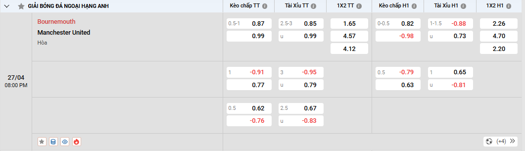 Soi kèo Bournemouth vs Manchester United 20h00, 27/04/2025 Ngoại Hạng Anh Vòng 34 Premier League, Quỷ Đỏ có chuyến hành quân tới sân Vitality với đội hình chịu nhiều tổn thất. Giới mộ điệu đánh giá không cao khả năng chiến thắng của MU, những dẫu sao họ cũng là đội bóng lớn. Cùng tỷ lệ kèo nhà cái tổng  hợp thêm thông tin để soi kèo Bournemouth vs Manchester United thêm phần chính xác hơn.Tổng hợp về soi kèo Bournemouth vs Manchester UnitedTrong quá khứ hai đội từng gặp nhau rất nhiều lần, MU vẫn là đội chiếm ưu thế với 6 chiến thắng và thua 4 ở 10 lần chạm trán gần nhất. Hiện tại phong độ của MU đang rất xa sút minh chứng trận lượt đi họ thất thủ 0-3 ngay trên sân nhà. Soi kèo Bournemouth vs Manchester United hãy nhìn vào bảng kèo của nhà cái như sau:Soi kèo Bournemouth vs Manchester United – Kèo Châu ÁPhong độ và vị trí trên BXHBournemouth đang duy trì phong độ khá ổn định dưới thời HLV Andoni Iraola khi mùa giải bước vào giai đoạn cuối. Họ hiện đang có mặt ở vị trí thứ 8 trên bảng xếp hạng và vẫn duy trì khả năng cạnh tranh với nhóm trên. Trong 5 trận gần nhất, Bournemouth giành được 1 chiến thắng, 2 trận hòa và 2 trận thua, cho thấy sự đi xuống. Trên sân nhà, đội bóng này luôn tỏ ra khó chịu, với chỉ một vài thất bại trong 10 trận gần nhất, điều này tạo ra lợi thế tâm lý lớn trước cuộc tiếp đón Manchester United.Trong khi đó, đội khách đang trải qua một mùa giải đầy sóng gió. Manchester United đã thua tới 15 trận tính đến thời điểm hiện tại, một con số phản ánh rõ sự bất ổn và khủng hoảng niềm tin trong nội bộ đội bóng. Họ chỉ hòa 3 và thua 2 trận, đứng thứ 14 trên BXH và gần như không có tấm vé dự cup Châu Âu mùa sau.HLV Ruben Amorim đang rất đau đầu về vấn nạn chấn thương, lối chơi của Quỷ đỏ vẫn chưa định hình rõ ràng, và dù có những tín hiệu tích cực nhỏ lẻ, phong độ tổng thể của họ là thiếu ổn định. Điểm đáng chờ đợi là họ vào tới bán kết Europa League và tràn đầy cơ hội vô địch.Tương quan lực lượng Bournemouth vs Manchester UnitedCả hai đội đều bước vào trận đấu này với đội hình không hoàn toàn lành lặn. Bournemouth phải chịu tổn thất lớn khi tiền đạo chủ lực Enes Unal bị đứt dây chằng chéo và phải nghỉ thi đấu hết mùa giải. Ngoài ra, Ryan Christie và Marcos Senesi vẫn chưa đạt thể trạng tốt nhất. Tuy vậy, sự trở lại của Luis Sinisterra giúp hàng công của đội chủ sân Vitality có thêm lựa chọn chất lượng và khả năng tạo đột biến cao.Bên kia chiến tuyến, Manchester United cũng không khá hơn khi phải thi đấu thiếu vắng nhiều trụ cột. Joshua Zirkzee và Lisandro Martinez đều đã khép lại mùa giải vì chấn thương nghiêm trọng, trong khi Amad Diallo và Mason Mount vẫn đang trong quá trình hồi phục. Những mất mát này ảnh hưởng đáng kể đến sức mạnh của đội hình, đặc biệt là ở tuyến giữa và hàng phòng ngự, nơi mà Quỷ đỏ vốn đã thi đấu không mấy chắc chắn từ đầu mùa.Soi kèo Bournemouth vs Manchester United – Tương quan lực lượng trước trậnNhận định lối chơiBournemouth dưới thời HLV Iraola chơi bóng với triết lý hiện đại, sử dụng sơ đồ 4-2-3-1 nhằm kiểm soát thế trận và khai thác tối đa khoảng trống hai cánh. Cặp đôi Justin Kluivert và Antoine Semenyo đang là hai nhân tố chủ lực trong cách vận hành tấn công, với khả năng di chuyển linh hoạt và dứt điểm hiệu quả. Bournemouth thường chủ động pressing tầm cao, tạo áp lực lên hàng hậu vệ đối phương và khai thác sai lầm từ các tình huống chuyển trạng thái.Manchester United vẫn đang loay hoay với mô hình 3-4-3 mà HLV Ruben Amorim mang đến. Dù hệ thống này thiên về kiểm soát bóng và tổ chức phản công nhanh, nhưng khả năng kết nối giữa các tuyến của Quỷ đỏ còn nhiều vấn đề. Bruno Fernandes vẫn là điểm sáng duy nhất với vai trò dẫn dắt lối chơi, nhưng sự thiếu chắc chắn nơi hàng phòng ngự khiến MU nhận những thất bại liên tiếp.Nhận định soi kèo Bournemouth vs Manchester United gợi ý đặt cượcKèo cược chấp (3/4:0): Đây là lần hiếm hoi MU bị chấp, dẫu không có được phong độ tốt nhất nhưng cũng không dễ dàng chi cho chủ nhà có chiến thắng. 5 trận đối đầu gần nhất thì Bournemouth có 2 trận thắng kèo hòa 2 và thua 1 kèo, 2/5 trận gần nhất hai đội thắng kèo con số khá khiêm tốn. Chuyên gia soi kèo Bournemouth vs Manchester United gợi ý chọn kèo trên.Đặt cược: Bournemouth -3/4.Kèo tài xỉu (2 3/4): Cả hai đội đều có hàng thủ yếu kém, trận đấu không có nhiều toan tính khi vị trí hiện tại chưa thể thay đổi được ngay. 4/5 trận gặp nhau trên 3 bàn, 2/5 và 3/5 trận ra tài là kết quả của 5 trận gần nhất của hai đội trên các đấu trường.Đặt cược: Tài 2 3/4.Chọn kèo Bournemouth thắng kèo Châu Âu, dự đoán tỷ số 3-1.Soi kèo Bournemouth vs Manchester United – Gợi ý đặt cượcĐội hình dự kiến ra sân Bournemouth vs Manchester UnitedThông tin về đội hình xuất phát giúp quá trình soi kèo 