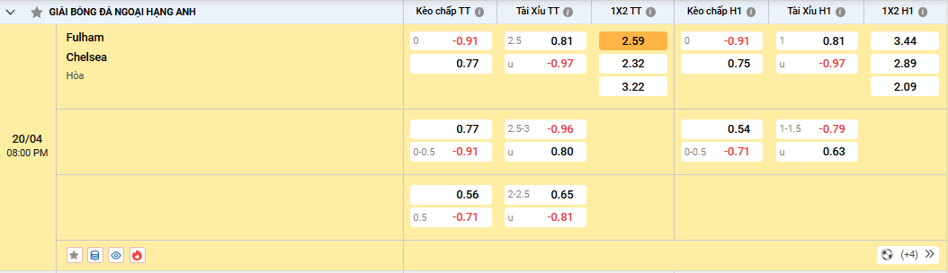 Soi kèo Fulham vs Chelsea 20h00, 20/04/2025 Ngoại Hạng Anh Trận derby Tây London giữa Fulham và Chelsea lúc 20h00 ngày 20/04/2025 tại sân Craven Cottage hứa hẹn sẽ rất hấp dẫn, đặc biệt khi cả hai đội đang cạnh tranh quyết liệt cho suất dự cúp châu Âu mùa sau. Kèo nhà cái sẽ soi kèo Fulham vs Chelsea cùng người chơi theo dõi và đặt cược chiến thắng nhà cái.Tổng quan thông tin soi kèo Fulham vs ChelseaTrận Derby luôn là trận đấu khá đặc biệt, bằng chứng trong lối chơi khá quyết liệt và có nhiều tình huống tấn công đẹp mắt. Trận lượt đi Fulham đã giành thắng lợi 2-1 trên chính sân của Chelsea rút ngắn khoảng cách đối đầu. 10 trận Chelsea thắng 7 hòa 1 và thua 2 trận. Soi kèo Fulham vs Chelsea hãy theo dõi tỷ lệ kèo sau:Soi kèo Fulham vs Chelsea – Kèo Châu ÁPhong độ gần đâyChủ nhà Fulham đang có phong độ khôn mấy ổn định với 2 chiến thắng và thua 3 trận trong 5 trận gần nhất tại Premier League. Chiến thắng 3-2 trước Liverpool là điểm sáng hiện tại họ hiện có 48 điểm đứng thứ 9 và vẫn còn cơ hội cạnh tranh vị trí trong top 6. Sự kết hợp giữa kinh nghiệm của Willian, sự sáng tạo của Emile Smith Rowe và phong độ cao của tiền đạo Rodrigo Muniz đang giúp Fulham trở thành đối thủ khó chịu với bất kỳ đội bóng nào.Bên kia chiến tuyến, Chelsea đang cho thấy sự trở lại khi bất bại ở 4 trận gần nhất với 2 chiến thắng hòa 2. Họ hiện đứng thứ 6 với 54 điểm, họ bị Newcastle vượt mặt và cũng bị nhóm sau bám đuổi quyết liệt. Tại đấu trường Conference League, họ gần như đặt chân vào bán kết khi có chiến thắng 3-0 trước Legia Warszawa trong trận lượt đi và còn trận lượt về trên sân nhà.Tương quan lực lượngFulham có một số chấn thương của Harrison Reed, Kenny Tete, Sander Berge, Reiss Nelson đội hình ra sân đã có những sự thay thế đáng kể và những cầu thủ mới cũng đáp ứng được nhu cầu. Rodrigo Muniz đang có 9 bàn mùa này, Alex Iwobi là cầu thủ khá quan trọng trong tấn công của đội nhà.Chelsea có một số chấn lương nhưng không quá nghiêm trọng như: Reece James, Wesley Fofana, Benoît Badiashile, Carney Chukwuemeka, Roméo Lavia. Họ vẫn có sự phục vụ của những ngôi sao như: Cole Palmer ghi được 11 bàn, Moisés Caicedo thi đấu khá ổn định.Soi kèo Fulham vs Chelsea – Tương quan lực lượngNhận định lối chơiChủ nhà Fulham, HLV Marco Silva thường sử dụng sơ đồ 4-2-3-1, tập trung vào kiểm soát bóng và phản công nhanh. Sự sáng tạo của Smith Rowe và Iwobi hỗ trợ tối đa cho Muniz ở tuyến trên.Dưới sự dẫn dắt của HLV Enzo Maresca, Chelsea ưu tiên kiểm soát bóng nhưng gặp khó khăn trong việc chuyển hóa cơ hội thành bàn thắng, đặc biệt là trên sân khách. Hàng thủ thiếu vắng nhiều trụ cột khiến họ dễ bị khai thác.Soi kèo Fulham vs Chelsea gợi ý đặt cược từ chuyên giaKèo cược chấp (0:0): Kèo đá đồng banh là kèo khá thấp và đánh giá cao chủ nhà, Đây là cơ hội để Chelsea phục hận sau trận thua lượt đi. 5 trận đối đầu hai đội đều thắng 2 kèo và hòa 1 kèo cược chấp. Ngoài ra Fulham thắng 3/5 kèo cược chấp, Chelsea thắng 1 hòa 1 và thua 3 kèo ở 5 trận trên mọi đấu trường. Chọn kèo Chelsea là lựa chọn an toàn hơn.Đặt cược: Chelsea đá đồng banh.Kèo tài xỉu (2,5): Thống kê có 1 trận hòa tài xỉu và 4 trận ra xỉu trong 5 trận gặp nhau gần nhất. Fulham có hàng công không được tốt khi ghi 6 bàn thắng và để thua 8 bàn trong 5 trận. Đội khách Chelsea chơi phòng thủ khá thụ động họ chỉ có 2/5 trận ra tài ghi được 6 bàn và để thua 3 họ giữ sạch lưới 3/5 trận.Đặt cược: Xỉu 2,5.Đặt cược Chelsea thắng kèo Châu Âu, dự đoán tỷ số 0-2.Soi kèo Fulham vs Chelsea – Nhận định đặt cượcĐội hình dự kiến ra sân Fulham vs ChelseaĐội hình ra sân cũng như sơ đồ sẽ giúp quá trình soi kèo Fulham vs Chelsea thêm thông tin để nhận định:Fulham: 1 Bernd Leno, 21 Timothy Castagne, 5 Joachim Andersen, 3 Calvin Bassey Ughelumba, 33 Antonee Robinson, 16 Sander Berge, 20 Sasa Lukic, 30 Ryan Sessegnon, 18 Andreas Hugo Hoelgebaum Pereira, 17 Alex Iwobi, 9 Rodrigo Muniz Carvalho.HLV: Marco Silva.Chelsea: 1 Robert Sanchez, 3 Marc Cucurella, 6 Levi Samuels Colwill, 4 Oluwatosin Adarabioyo, 23 Trevoh Thomas Chalobah, 25 Moises Caicedo, 8 Enzo Fernandez, 7 Pedro Neto, 20 Cole Jermaine Palmer, 11 Noni Madueke, 15 Nicolas Jackson.HLV: Enzo Maresca.Kết LuậnDù Fulham có phong độ tốt nhưng khó có thể chiếm thế áp đảo Chelsea đội bóng thi đấu phòng thủ khá hay, nhận định soi kèo Fulham vs Chelsea nên chọn kèo Chelsea đây là kèo cược có tỉ lệ thắng cao, hãy tự tin và chiến thắng nhà cái. Soi kèo Manchester United vs Wolves 20h00, 20/04/2025 Ngoại Hạng Anh Soi kèo Leicester City vs Liverpool 22h30, 20/04/2025 Ngoại Hạng Anh Tin liên quan Soi Kèo Torino Vs Como 00h30 25/11 – Vô Địch Ý Soi Kèo Real Betis Vs Girona 22h15 23/11 – La Liga Soi Kèo Valencia Vs Levante 3h 22/11 – La Liga 2025 – 2026 Soi Kèo Bahia Vs Fortaleza CE 4h 21/11 – Brasileirão Série A Soi Kèo Fluminense Vs Flamengo 7h30 20/11 – VĐQG Brazil Soi Kèo Belgrano Vs Union Santa Fe 3h 18/11 – VĐQG Argentina Soi Kèo Godoy Cruz Vs Deportivo Riestra 4h 17/11 – Li
