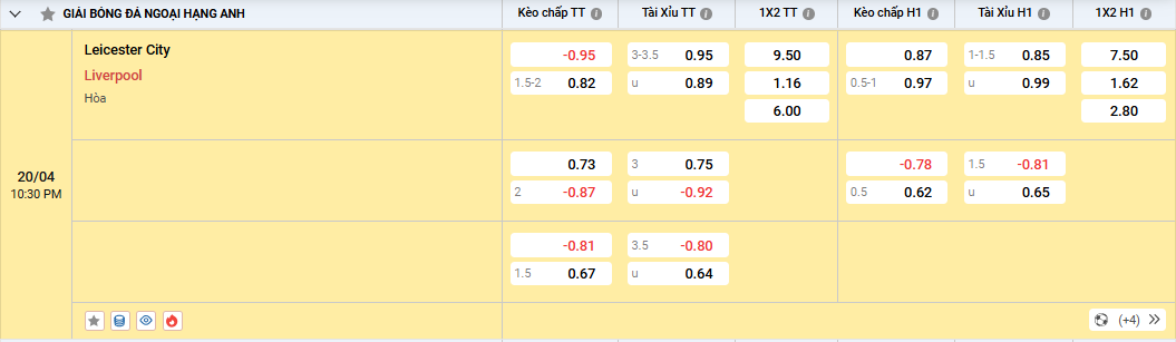 Soi kèo Leicester City vs Liverpool 22h30, 20/04/2025 Ngoại Hạng Anh Trên sân nhà King Power, Bầy Cáo phải đón tiếp đội đứng đầu tại Premier League với nhiệm vụ có điểm để tích lũy trong cuộc đua trụ hạng. Để có thêm tỷ lệ kèo chính xác hãy vào kèo nhà cái và tham khảo nhận định soi kèo Leicester City vs Liverpool từ chuyên gia.Thông tin soi kèo Leicester City vs LiverpoolLiverpool vẫn luôn được đánh giá cao hơn khi họ có đội hình đồng đều, lối chơi đa dạng. Thành tích đối đầu cho thấy Liverpool thắng 7 trận hòa 1 và thua 2. Nếu có được chiến thắng họ sẽ tiến gần hơn đến ngôi vô địch khi mùa giải vẫn còn 5 vòng đấu. Soi kèo Leicester City vs Liverpool hãy tham khảo bảo kèo nhà cái đưa ra như sau:Soi kèo Leicester City vs Liverpool – Kèo Châu ÁPhong độ của hai độiLeicester City đang trải qua một mùa giải đầy khó khăn khi đứng ở vị trí thứ 19 trên bảng xếp hạng. Họ chỉ giành được 4 chiến thắng, 6 trận hòa và để thua tới 22 trận sau 32 vòng đấu. Đáng chú ý, Leicester đã không thể ghi bàn trong 8 trận sân nhà gần nhất và hiện đã thua liên tiếp 6 trận đối đầu. Leicester City hòa 1 và thua 4 trận trong 5 trận gần nhất của họ.Trong khi đó, Liverpool vẫn đang băng băng về đích dù mới bị Fulham hạ 3-2. Họ vẫn đang dẫn đầu bảng xếp hạng với thành tích 23 thắng, 7 hòa và chỉ 2 thua sau 32 vòng đấu. Họ đã ghi được 74 bàn và chỉ để thủng lưới 31 lần. Đặc biệt, Liverpool có phong độ cực tốt khi thi đấu sân khách và chỉ mới thua 1 trận tại Premier League. Liverpool thắng 2 và thua 3 trận.Tương quan lực lượngLeicester City không có nhiều thiếu vắng đáng lo ngại, Jamie Vardy vẫn là tiền đạo kỳ cựu của đội bóng hiện đang có 7 bàn thắng và 3 kiến tạo. Hàng thủ là điểm yếu khi đã để thủng lưới tới 72 bàn mùa này và chỉ giữ sạch lưới 1 trận. Liverpool vẫn có đội hình mạnh nhất, cầu thủ đánh chú ý là Mohamed Salah ngôi sao người Ai Cập đang có mùa giải bùng nổ với 27 bàn thắng và 21 kiến tạo. Ibrahima Konaté khả năng có thể trở lại sau chấn thương, trong khi Trent Alexander-Arnold vẫn vắng mặt. Soi kèo Leicester City vs Liverpool – Lực lượng và lối chơi hai độiNhận định lối chơiLeicester City được đánh giá yếu hơn rất nhiều dù đá trên sân nhà, họ có quyết tâm cao trong con đường trụ hạng. Dưới sự dẫn dắt của HLV Ruud van Nistelrooy, Leicester thường triển khai lối chơi phòng ngự phản công, dựa vào tốc độ của Jamie Vardy. Tuy nhiên, sự thiếu gắn kết giữa các tuyến và hàng thủ lỏng lẻo khiến họ dễ bị đối phương khai thác.Liverpool tiếp tục duy trì lối chơi pressing tầm cao, kiểm soát bóng tốt và tấn công đa dạng dưới sự dẫn dắt của HLV Arne Slot. Sự kết hợp giữa hàng công sắc bén và hàng thủ chắc chắn giúp họ áp đảo hầu hết các đối thủ.Soi kèo Leicester City vs Liverpool gợi ý đặt cượcKèo Châu Á (0:1 3/4): đây là tỷ lệ cược chấp khá cao trong bối cảnh hiện tại, tuy nhiên nhìn lại kết quả 5 trận đối đầu thì Liverpool thắng 2/5 kèo, ngoài ra chủ nhà thắng 2 hòa 1 kèo trong 5 trận gần đây, Liverpool toàn thua cả 5 kèo. Soi kèo Leicester City vs Liverpool nên chọn kèo dưới.Đặt cược: Leicester City + 1 3/4.Kèo tài xỉu (3 1/4): Ở 5 trận đối đầu có 3/5 trận ra tài, cả hai đội đều có 3/5 trận có tổng trên 3 bàn ở 5 trận trên các đấu trường. Trận này Liverpool sẽ thi đấu áp đảo những sự nôn nóng sẽ khiến họ trả giá.Đặt cược: Tài 3 1/4.Đặt cược kèo Hòa Châu Âu, dự đoán tỷ số 2-2.Soi kèo Leicester City vs Liverpool – Nhận định đặt cượcĐội hình dự kiến thi đấu chínhLeicester City: 30 Mads Hermansen, 2 James Justin, 5 Caleb Okoli, 4 Conor Coady, 33 Luke Thomas, 6 Wilfred Onyinye Ndidi, 24 Boubakary Soumare, 35 Kasey McAteer, 11 Bilal El Khannouss, 10 Stephy Mavididi, 9 Jamie Vardy.HLV: Ruud van Nistelrooy.Liverpool: 1 Alisson Becker, 21 Konstantinos Tsimikas, 4 Virgil van Dijk, 5 Ibrahima Konate, 84 Conor Bradley, 10 Alexis Mac Allister, 38 Ryan Jiro Gravenberch, 7 Luis Fernando Diaz Marulanda, 17 Curtis Jones, 11 Mohamed Salah Ghaly, 20 Diogo Jota.HLV: Arne Slot.Kết luậnQuá trình soi kèo leicester city vs liverpool trên đây người chơi có thể nhìn nhận lại thông tin và chọn kèo theo nhận định của mình. Để có thêm thông tin những trận đấu khác người chơi có thể vào chuyên mục soi kèo của chúng tôi, hãy chơi có trách nhiệm để luôn là người chiến thắng nhà cái. Soi kèo Fulham vs Chelsea 20h00, 20/04/2025 Ngoại Hạng Anh Soi kèo Tottenham vs Nottingham 02h00, 22/04/2025 Ngoại Hạng Anh Tin liên quan Soi Kèo Torino Vs Como 00h30 25/11 – Vô Địch Ý Soi Kèo Real Betis Vs Girona 22h15 23/11 – La Liga Soi Kèo Valencia Vs Levante 3h 22/11 – La Liga 2025 – 2026 Soi Kèo Bahia Vs Fortaleza CE 4h 21/11 – Brasileirão Série A Soi Kèo Fluminense Vs Flamengo 7h30 20/11 – VĐQG Brazil Soi Kèo Belgrano Vs Union Santa Fe 3h 18/11 – VĐQG Argentina Soi Kèo Godoy Cruz Vs Deportivo Riestra 4h 17/11 – Liga Profesional Soi Kèo Thổ Nhĩ Kỳ Vs Bulgaria 00h 16/11 – Vòng Loại World Cup 2026
