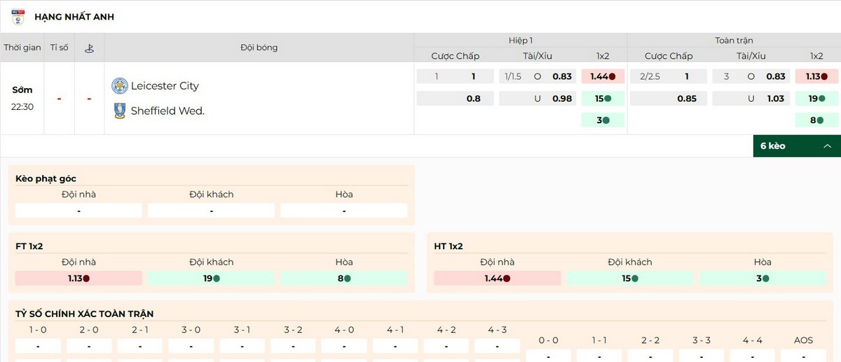 Soi Kèo Leicester City Vs Sheffield Wednesday 22h30 10/08 – Championship LOẠI KÈOKÈODỰ ĐOÁNKÈO CHÂU ÁLeicester City -2/2.5 tráiChọn Sheffield WednesdayKÈO TÀI XỈU3Chọn XỉuKÈO CHÂU ÂULeicester City thắng tỉ lệ 1:1.13Sheffield Wednesday thắng tỉ lệ 1:19Hoà 1:8Chọn Leicester CityKÈO TỶ SỐ CHÍNH XÁCDự đoán: 2-0Leicester City vs Sheffield Wednesday được đánh giá là cuộc thư hùng đầy duyên nợ tại Championship 2025/2026. Liệu rằng câu lạc bộ nào sẽ giành được niềm vui thắng lợi trong ngày ra quân? Bảng kèo mới nhất của trận cầu này có gì đặc biệt? Hãy tham khảo bài viết để theo dõi nhận định kèo bóng đá trước trận từ chuyên gia.Đánh giá kèo Leicester City vs Sheffield Wednesday mới nhấtMàn chạm trán tại lượt trận đầu tiên giải Hạng nhất Anh giữa Leicester City gặp Sheffield Wednesday mang đến nhiều tỷ lệ kèo nổi bật. Các bạn không thể bỏ lỡ những thông số hấp dẫn sau:Kèo chấp 2/2.5 tráiMột tỷ lệ chấp rất cao xuất hiện trong trận đấu của Leicester City vs Sheffield Wednesday ngày 10/08. Với lợi thế vượt trội khi chơi tại King Power và sở hữu chỉ số phong độ ấn tượng, “Bầy cáo” được nhận định ở cửa trên và chấp đối thủ 2/2.5 trái. Tuy nhiên, Sheffield cũng không phải đội bóng dễ bị bắt nạt. Vì vậy, mọi người hãy dự đoán nghiêng về kèo dưới với tỷ lệ 2.25 trái.Tỷ lệ kèo Leicester City vs Sheffield Wednesday hôm nayKèo tài xỉu 3 tráiTrước thềm mùa bóng mới, “Bầy cáo” đang gặp vấn đề khá lớn về hàng công đặc biệt là sau khi chia tay Vardy. Trong 5 trận gần đây, Leicester chỉ ghi được 8 bàn thắng – một con số khá khiêm tốn. Ở phía đối thủ, Sheffield cũng cho thấy sự nghèo nàn trong khâu tấn công. Câu lạc bộ này mới ghi được 5 pha làm bàn trong 5 trận gần nhất. Do đó, hội viên hãy ưu tiên nhận định kèo Xỉu 3 bàn thắng.Kèo châu ÂuMức kèo 1×2 được gợi ý trong cặp đấu này khá chênh lệch. Các chuyên gia đều nghĩ về một thắng lợi sẽ ở lại King Power trong trận đấu giữa Leicester City vs Sheffield Wednesday sắp tới. Cụ thể đó là:Cửa 1: Leicester City thắng tỉ lệ 1:1.13.Cửa 2: Sheffield Wednesday thắng tỉ lệ 1:19.Cửa X: kết quả hòa với tỉ lệ 1:8.Cập nhật phong độ Leicester City và Sheffield WednesdayHiện tại, thành tích thi đấu của hai câu lạc bộ tương đối trái ngược nhau. Vì vậy để đưa ra dự đoán thành công về cặp đấu này, các bạn hãy theo dõi chỉ số phong độ như sau:Bên phía Leicester CityTrước cuộc tiếp đón Sheffield Wednesday tại vòng 1 Championship, “Bầy cáo” đang chơi rất thăng hoa. Theo thống kê mới nhất, đội chủ sân King Power giành được 4 thắng lợi và chỉ đón nhận duy nhất 1 trận thua ở 5 lượt đấu đã qua.Cụ thể, Leicester vượt qua Fiorentina với kết quả 2-0, Karpaty Lviv 2-1, Zalaegerszegi 1-0 và Leuven 2-1. Bên cạnh đó, đội bóng này chịu thất bại trước FC Koln vào ngày 25/07 với tỉ số 1-3.Phong độ của “Bầy cáo”Bên phía Sheffield WednesdayTrước trận đấu giữa Leicester City vs Sheffield Wednesday, đội khách đang có chuỗi trận không tốt. Nếu xét riêng 5 lượt trận gần nhất, câu lạc bộ này chỉ giành duy nhất một thắng lợi. Ngoài ra đội bóng có hai trận hòa và nhận hai trận thua.Theo đó, Sheffield Wednesday đánh bại đối thủ Middlesbrough 2-1 tại Championship mùa trước. Hai trận cầu chia điểm của đội bóng diễn ra trước Portsmouth 1-1 và Watford 1-1. Những thất bại của Sheffield xuất hiện trước các đối thủ gồm Stoke City 0-2 và Lincoln Utd 1-3.Phong độ đội khách gần đâyLịch sử gặp nhau giữa Leicester City vs Sheffield WednesdayThống kê trong quá khứ cho thấy, Leicester City vs Sheffield Wednesday đã gặp nhau rất nhiều lần, đặc biệt là tại hạng nhất Anh. Theo đó, “Bầy cáo” thi đấu lép vế và chịu nhiều thất bại hơn trước đối thủ.Tuy nhiên trong các mùa bóng gần đây, sức mạnh của hai câu lạc bộ đã đảo chiều. Nếu xét riêng 5 trận gần nhất giữa hai đội, Leicester sở hữu ưu thế tuyệt đối với hai chiến thắng và hai trận hòa. Ngược lại, Sheffield chỉ có một lần duy nhất đánh bại đối thủ từ năm 2013.Thông số chạm trán giữa 2 CLBDự kiến đội hình, tỉ số Leicester City vs Sheffield Wednesday 10/08Bên phía chủ nhà, “Bầy cáo” đang cho thấy sự chuẩn bị kỹ lưỡng về mặt nhân sự trước trận khai màn Championship. Tuy nhiên, phía đội khách gặp nhiều thách thức trước mùa giải mới do có rất nhiều cầu thủ ra đi. Dưới đây là danh sách các chân sút dự kiến sẽ góp mặt ở trận cầu ngày 10/08:Leicester City: Hermansen, Faes, Joseph, Justin, Vestergaard, Briggs, Ndidi, Winks, Fatawu, Mavididi, Silko.Sheffield Wednesday: Barrett, Reed Sam, Ramsey, Valery, Mackenzie, Hendrick, Charles, Hatsuse, Armstrong, Djeidi, Wilks.Điểm qua lực lượng các đội chơi trước giờ khai cuộcMọi người có thể nhận thấy, sự chênh lệch trình độ cầu thủ giữa hai đội tương đối rõ rệt. Vì vậy, trận đấu giữa Leicester City vs Sheffield Wednesday nhiều khả năng sẽ diễn ra với thế trận một chiều. “Bầy cáo” có thể đánh bạ