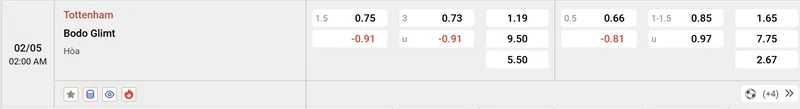 Soi Kèo Tottenham vs Bodo Glimt 02h00, 02/05/2025 Bán Kết C2 Đại diện nước Anh – Tottenham Hotspur sẽ có trận tiếp đón Bodo Glimt trên sân vận động cùng tên trong khuôn khổ bán kết giải đấu Europa League. Tỷ lệ kèo sẽ đưa ra những nhận định có liên quan đến trận đấu Tottenham vs Bodo Glimt để bạn có thể đưa ra quyết định đặt cược đúng.Tổng hợp về soi kèo Tottenham vs Bodo GlimtTrước khi bước vào trận đấu quan trọng tại Europa League, Tottenham đã phải chịu một thất bại nặng nề trước Liverpool với tỷ số 1-5. Trận đấu này sẽ khiến thể lực đội bóng nước Anh ảnh hưởng ít nhiều về mặt thể lực cũng như tinh thần. Bảng kèo dưới đây sẽ được phân tích kỹ càng để bạn có được lựa chọn chính xác nhất:Tỷ lệ kèo trận đấu Tottenham vs Bodo GlimtPhong độ và vị trí trên BXH Tottenham vs Bodo GlimtTottenham đang có một mùa giải đáng thất vọng ở Premier League. Hiện tại, họ đang đứng ở vị trí thứ 16 trên bảng xếp hạng và nếu giữ nguyên vị trí này, Gà Trống sẽ kết thúc một mùa giải với vị trí thấp nhất trong lịch sử (trước đây là vị trí 15). Do đó, Tottenham cần một danh hiệu khác để lấy lại niềm tin người hâm mộ.Ở Europa League, Gà Trống đã vào tới bán kết và đối thủ của họ chỉ là Bodo Glimt. Nhờ đó, cánh cửa vào chung kết đang rộng mở.Còn về phía Bodo Glimt, dù bị đánh giá yếu hơn Tottenham trong trận đấu này nhưng Gà Trống phải cẩn thận bởi phong độ của đội khách đang rất tốt trong thời gian gần đây. Trong 3 vòng đấu đầu tiên vừa rồi tại giải vô địch quốc gia Na Uy, Bodo đã thể hiện sức mạnh tuyệt đối của đội bóng thống trị khi chiến thắng 3 trận và để hòa 1 trận trong 4 trận đầu tiên của mùa giải mới.Tương quan lực lượng Tottenham vs Bodo GlimtBodo Glimt bước vào trận bán kết Europa League với đội hình có chiều sâu và phong độ ổn định, dù thiếu vắng vài trụ cột do chấn thương. Về phía Tottenham, Radu Dragusin hiện tại vẫn chưa có thời gian trở lại chính thức. Còn phía Son Heung-min thì đang trong quá trình hồi phục chấn thương ở chân khả năng ra sân vẫn còn là một ẩn số. Một trận đấu sẽ đầy khó khăn phía trước.Tottenham cần thắng để vớt vát một mùa giải đầy thất vọngNhận định lối chơi Tottenham vs Bodo GlimtĐội hình của Bodø/Glimt hiện tại thiếu vắng một số trụ cột do chấn thương, bao gồm Daniel Bassi, Runar Espejord và Nino Zugelj. Tuy nhiên, họ vẫn còn những cầu thủ chất lượng như Zinckernagel, người đã có kinh nghiệm thi đấu tại Premier League với Watford và Nottingham Forest .Tottenham thiếu đi tiền đạo chủ chốt của mình, hàng thủ cũng không ổn thế nên dự kiến Gà Trống sẽ để cho trận đấu chậm lại, vừa phòng thủ và chờ đợi cơ hội phản công.Nhận định soi kèo Tottenham vs Bodo Glimt gợi ý đặt cượcDù không có cho mình phong độ và lực lượng tốt nhất nhưng nhà cái vẫn đánh giá cao đội bóng chủ nhà khi đặt tỷ lệ chấp lên tới 1.5 bàn. Bodo Glimt với lối chơi phản công sắc bén và tinh thần chiến đấu kiên cường sẽ là thử thách không nhỏ cho Tottenham. Trong khi đó, Spurs cần cải thiện phong độ và khắc phục những sai lầm trong phòng ngự để có thể giành chiến thắng. Trận đấu hứa hẹn sẽ rất căng thẳng và kịch tínhĐặt cược: Bodo Glimt +1.5Kèo tài xỉu ở mức 3 quả, theo thống kê 5 trận đấu gần đây, Tottenham để thủng lưới tới 12 bàn. Trong khi đó Bodo ghi tới 14 bàn trong 5 trận gần đây. Rõ ràng ta có thể hy vọng vào một trận cầu có cơn mưa bàn thắng.Đặt cược: Tài 3Chọn của Tottenham thắng ở kèo châu Âu, dự đoán tỷ số 3-2Liệu Bodo Glimt có thể tạo được bất ngờ?Đội hình dự kiến ra sân Tottenham vs Bodo GlimtTottenham Hotspur (4-2-3-1): Vicario; Porro, Romero, van de Ven, Udogie; Bissouma, Sarr; Kulusevski, Maddison, Son; Richarlison.HLV: Ange PostecoglouBodo Glimt (4-3-3): Haikin; Sørli, Nielsen, Saltnes, Høibråten; Evjen, Berg, Saltnes; Hauge, Pellegrino, Espejord.HLV: K. KnutsenTổng kếtTrận đấu giữa Tottenham vs Bodo Glimt hứa hẹn sẽ mang đến nhiều kịch tính khi một bên là đại diện Premier League đang tìm cách cứu vãn mùa giải, còn bên kia là hiện tượng từ Na Uy với lối chơi phản công đầy khó chịu. Soi kèo nhà cái chúc bạn may mắn trong các lựa chọn cược của mình. Soi Kèo Barcelona Vs Inter Milan 02h00, 01/05/2025 Bán Kết C1 Soi Kèo Athletic Bilbao Vs Manchester United 02h00, 02/05/2025 Bán Kết C2 Tin liên quan Soi Kèo Torino Vs Como 00h30 25/11 – Vô Địch Ý Soi Kèo Real Betis Vs Girona 22h15 23/11 – La Liga Soi Kèo Valencia Vs Levante 3h 22/11 – La Liga 2025 – 2026 Soi Kèo Bahia Vs Fortaleza CE 4h 21/11 – Brasileirão Série A Soi Kèo Fluminense Vs Flamengo 7h30 20/11 – VĐQG Brazil Soi Kèo Belgrano Vs Union Santa Fe 3h 18/11 – VĐQG Argentina Soi Kèo Godoy Cruz Vs Deportivo Riestra 4h 17/11 – Liga Profesional Soi Kèo Thổ Nhĩ Kỳ Vs Bulgaria 00h 16/11 – Vòng Loại World Cup 2026