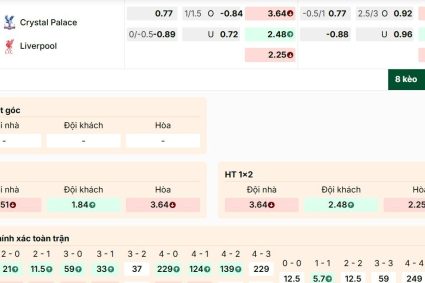 Soi Kèo Crystal Palace Vs Liverpool 21h00 27/9 – Ngoại Hạng Anh LOẠI KÈOKÈODỰ ĐOÁNKÈO CHÂU ÁCrystal Palace +3/4 tráiChọn LiverpoolKÈO TÀI XỈU2.5/3Chọn XỉuKÈO CHÂU ÂUCrystal Palace thắng tỷ lệ 1:3.51Liverpool thắng tỷ lệ 1:1.84.Hoà 1:3.64Chọn LiverpoolKÈO TỶ SỐ CHÍNH XÁCDự đoán: 0-1Thời gian: 21h00 […]